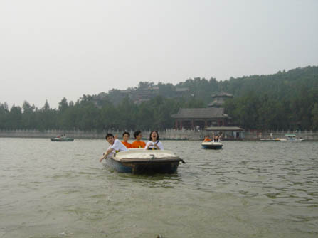 佳人在側(cè),泛舟昆明湖上,想當(dāng)年多少才子佳人,王孫貴族,金枝玉葉,花前月下,多浪漫的事啊……可如今,看他們這樣的情景,哪是泛舟,呵呵,該叫飚舟才對,哈哈。