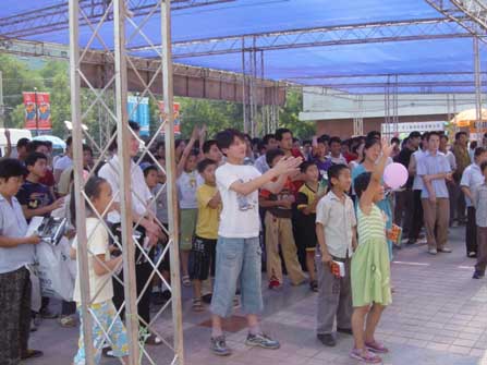臺下連小孩子也熱情非凡,每人還帶上一塊商科集團(tuán)的奧運(yùn)活動的標(biāo)貼,支持奧運(yùn)、支持商科。
