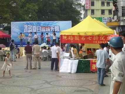 夏日的太陽向人們燒出一滾滾的熱情,廣州商科分公司參加佛山鴻運(yùn)廣場舉行的“冰藍(lán)夏日,激情無限”活動。