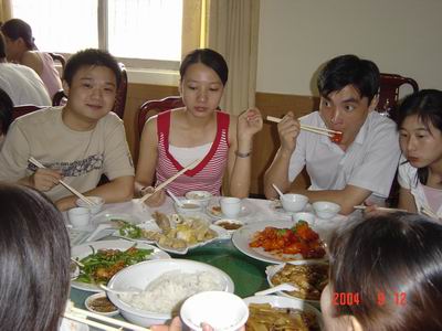 結(jié)束了路途的奔波,大伙兒該好好飽餐了。其實(shí)真不是這魚這肉好吃得不得了呀,只是此清遠(yuǎn)一漂,TMD說(shuō)不準(zhǔn)就漂到何方做了美人魚,有得吃就多吃點(diǎn)吧,可以笑的時(shí)候就盡量逼真吧,日后的事......哎!兄弟姐妹們,開(kāi)動(dòng)吧!