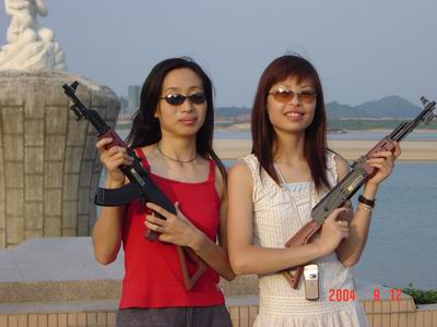 是驚訝?是驚奇?還是驚嚇?原來(lái)商科的MM戴上墨鏡,挎上個(gè)塑料槍,擺個(gè)酷POSE也可以這樣的!如果來(lái)個(gè)AK-47后果會(huì)怎樣~~~