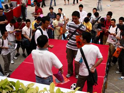 不一會整個會場就熱鬧起來了,在眾多的參展攤位中,以商科的攤位吸引了最多少男少女的眼光