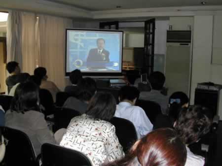 大家正認(rèn)真地觀看“余世維的光盤”