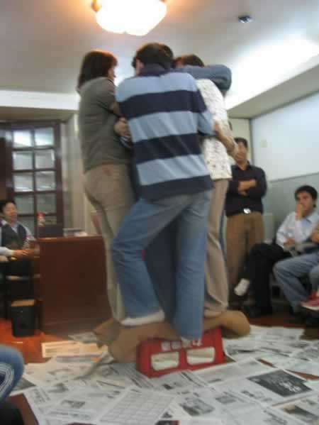 第二組的成員在組長的帶領(lǐng)下,全組成員團(tuán)結(jié)一致,緊緊得抱在一起,堅持了20分鐘,取得了第一名。