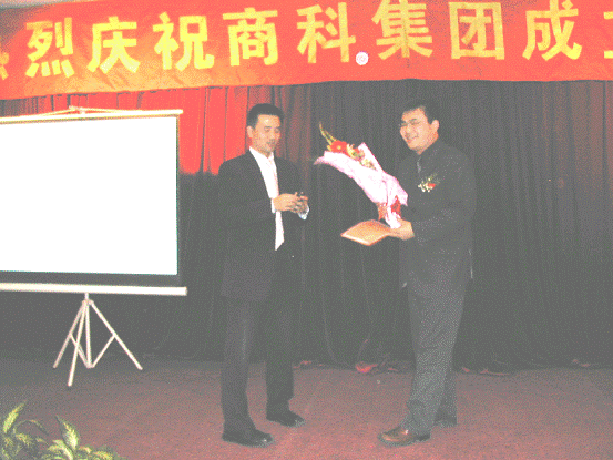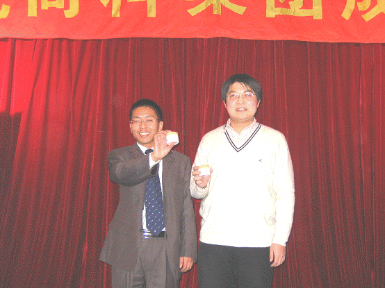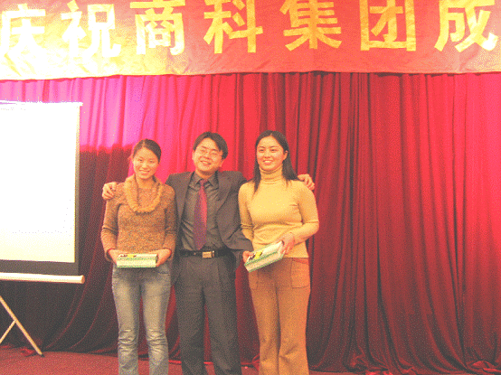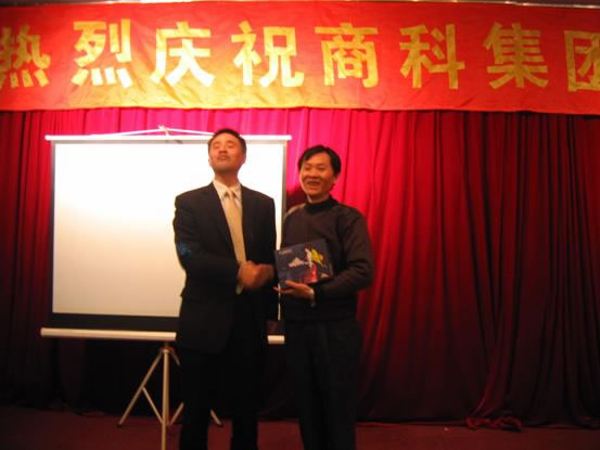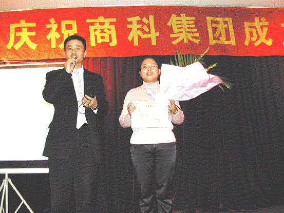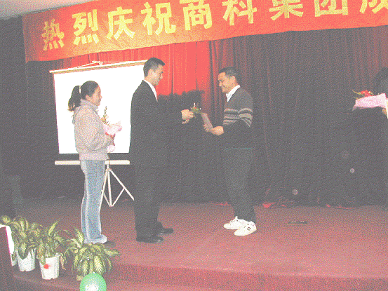 上海分公司員工呂家起正在接受孫經(jīng)理頒發(fā)的“銷售標(biāo)兵”這個(gè)榮譽(yù)稱號(hào)