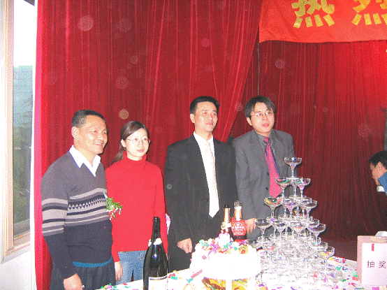 分公司兩位領(lǐng)導(dǎo)和壽星、優(yōu)秀員工合影