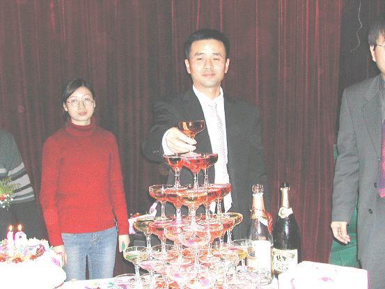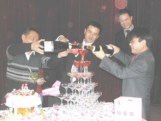 經(jīng)理、副經(jīng)理與優(yōu)秀員工共同開啟“歡慶之酒”