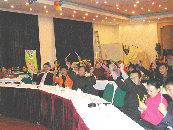 上海分公司領(lǐng)導(dǎo)帶領(lǐng)全體員工揮動(dòng)著手中歡樂之棒,慶祝商科成立十周年活動(dòng)圓滿閉幕