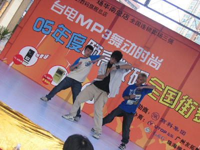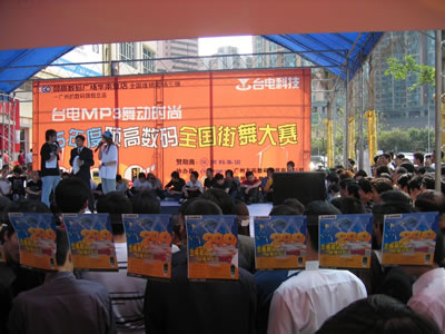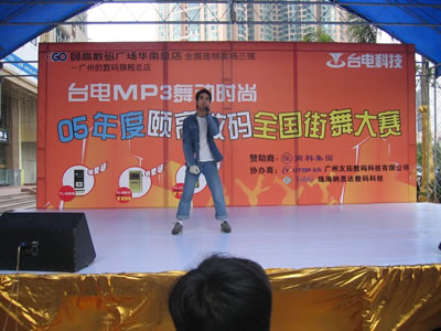 連續(xù)多日陰雨的廣州在4月2日這天奇跡般的晴朗,由商科集團(tuán)贊助的“臺電MP3 舞動時尚—全國街舞邀請賽”也在這天正式拉開帷幕。魔幻的舞步、激情的