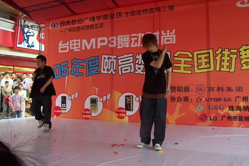 一樣的日月一樣的期盼,一樣的守候一樣的焦點(diǎn),讓我們在同一時間與地點(diǎn)相聚吶喊:“動起來…….姐妹兄弟動起來…..Hello:臺電MP3舞動時尚05年全國街舞大賽又與大家會面了,下面請跟隨著節(jié)奏走進(jìn)臺電時尚空間……