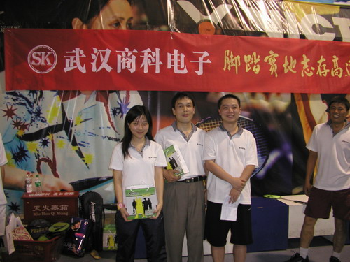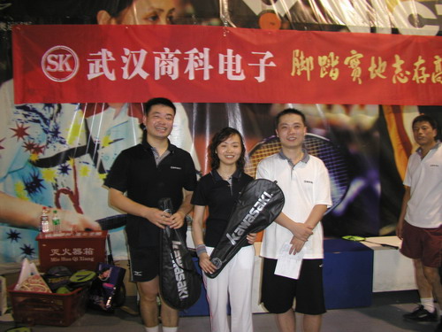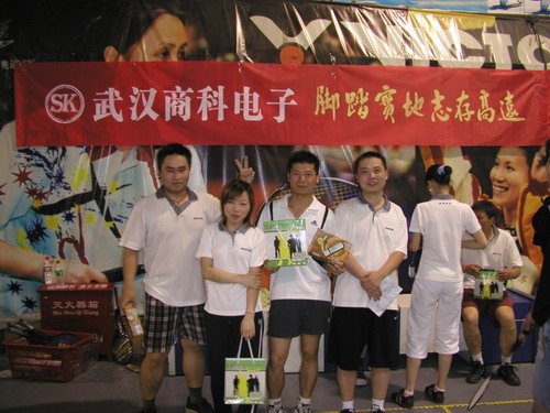 2005年6月20日,頂著烈日驕陽(yáng),武漢商科電子一行來(lái)到了武漢國(guó)際會(huì)展中心體育館,今天我們要在這里舉行一場(chǎng)你爭(zhēng)我?jiàn)Z的混雙羽毛球比賽。聽(tīng)說(shuō)獎(jiǎng)品還是挺豐厚的,大伙一個(gè)個(gè)摩拳擦掌,躍躍欲試,向著冠軍沖啊….!!!