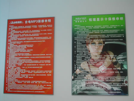 (圖7)各產(chǎn)品的保修條例貼在墻上,讓客戶(hù)更好的了解