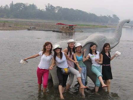 桂林象征——象鼻山下,抵不住漓江水的誘惑,眾MM紛紛下水在小象旁嘻戲。