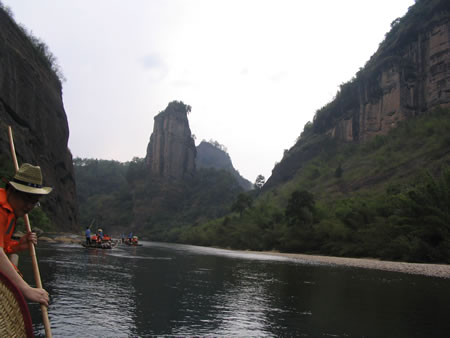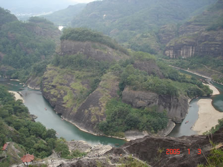 武夷山風(fēng)景區(qū)東西寬約5公里,南北長約14公里,面積60平方公里。有九曲溪、溪南、水簾洞、碧石巖、桃源洞、三仰峰、武夷宮、云窩等景點(diǎn),屬典型的丹霞地 貌,素有“碧水丹山”、“奇秀甲東南”之美譽(yù),是首批國家級(jí)重點(diǎn)風(fēng)景名勝區(qū)之一,被國際旅游組織執(zhí)委會(huì)主席巴爾科夫人稱為“世界環(huán)境保護(hù)的典范”。武夷山是《洞天福地記》(杜光庭)里的三十六洞天之一。“三三秀 水清如玉,六六奇峰翠插天”,構(gòu)成了奇幻百出的武夷山水之勝。“溪曲三三水,山環(huán)六六峰”,“曲曲山回轉(zhuǎn),峰峰水抱流”﹔臨水可觀山景,登山可望水秀,乘上一 葉竹筏游覽世間一絕的九曲溪,順流而下,山沿水立,水隨山轉(zhuǎn),山光水色,交相輝 映,三十六峰、九十九巖一覽無余,其間更有距今約3800年前高插于懸崖峭壁之上的 船棺,令人嘆為觀止.....