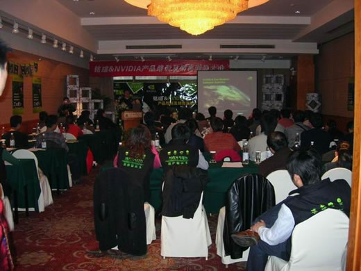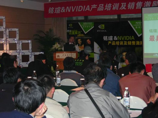 這次會議在上海建國賓館舉行,會場經(jīng)過了工作人員精心準備,銘瑄、NVIDIA及眾多經(jīng)銷商共聚一堂,整個會場座無虛席,氣氛相當熱烈。