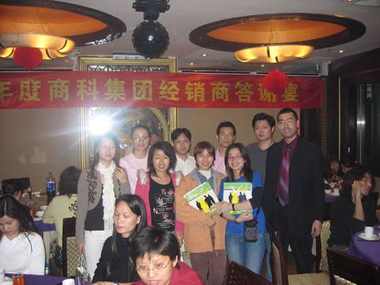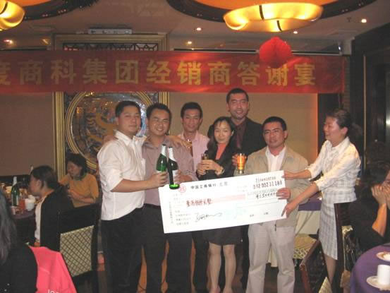 2006年1月17日,商科集團廣州分公司與100多位經銷商濟濟一堂,舉行了經銷商答謝宴,感謝過去一年各位經銷商對商科集團的支持,當晚還頒發(fā)了“年度個人貢獻獎”,“年度公司貢獻獎”,“年度優(yōu)秀代理商獎”,獎品和獎金豐厚,氣氛熱烈,讓我們一起看看當晚的盛況。