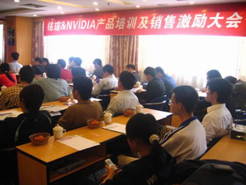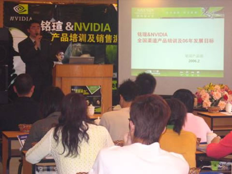 2006年2月16日,繼銘瑄&NVIDIA全國(guó)產(chǎn)品培訓(xùn)及銷售激勵(lì)大會(huì)在深圳、成都、南昌、南京、上海成功落幕之后,來(lái)到華南IT重鎮(zhèn)——廣州。會(huì)議現(xiàn)場(chǎng)到會(huì)嘉賓包括NVIDIA中國(guó)區(qū)渠道銷售經(jīng)理侯先生,商科集團(tuán)銘瑄品牌經(jīng)理林先生,商科集團(tuán)銘瑄品牌經(jīng)理趙先生,商科集團(tuán)廣州分公司經(jīng)理李先生,以及眾多經(jīng)銷商。大家就過(guò)去一年的合作做了全面總結(jié),并著重關(guān)注了今年規(guī)劃,大家均持樂(lè)觀積極的展望態(tài)度,銘瑄和NVIDIA也表達(dá)了加強(qiáng)合作的意愿。
