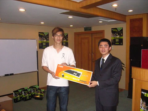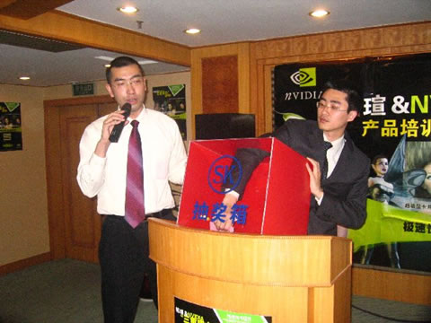 大獎(jiǎng)?wù)Q生,銘瑄6系顯卡!趙先生和侯先生分別頒獎(jiǎng),經(jīng)銷商們都興奮不已。