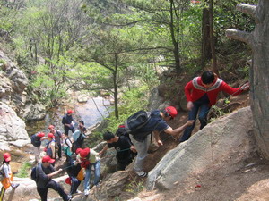 在春天的腳步已來臨之季,讓我們一同從城市的喧囂、工作的壓力中掙脫出來,2006年4月16日武漢商科一行25人,踏上勇敢者之路, 在兩天的拓展活動中,真切地體驗到團(tuán)隊的存在和原來的真實自我,每一次的獲取都讓我們感動……來,和我們一同感受“共同面對問題,共同分享快樂!”吧!!雙峰山主峰由兩座對峙且相鄰的峰嶺組成,海拔888米,為孝感市第一高峰,相傳為董永、七仙女"仙化"而成,其森林繁茂,氣候宜人,素有"仙源"之美譽(yù)。
