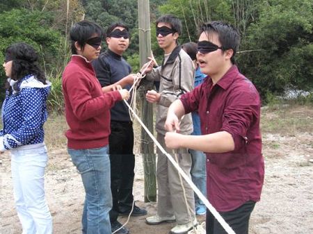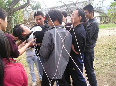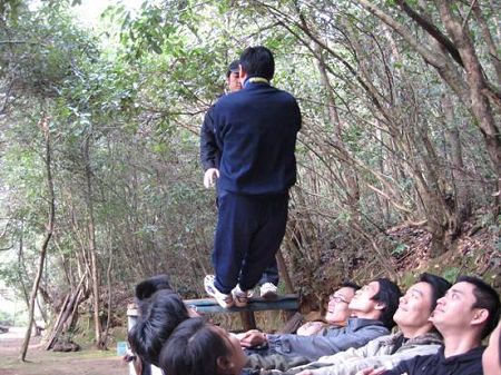“中國龍”隊正以優(yōu)美的身姿體驗高難度的“信任背摔”項目