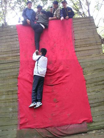 “中國龍”隊在隊長的帶領(lǐng)下全部順利通過畢業(yè)墻