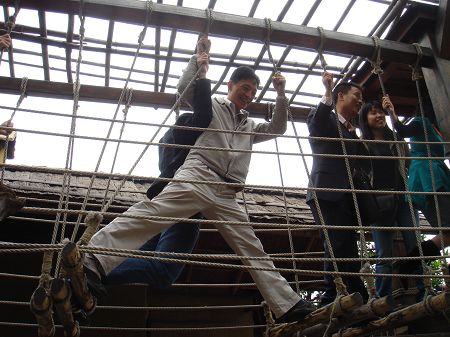 一不小心我們兩位可愛的同事被點名上臺表演了:),據說這個節(jié)目叫"娶親"