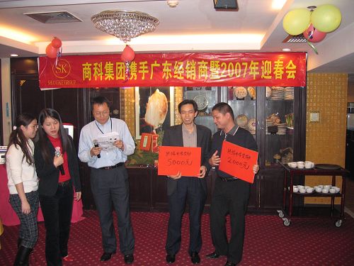 2月1日廣州商科為了答謝經(jīng)銷商在過去的一年中給予的支持和厚愛,在廣武酒店舉辦了"商科集團(tuán)攜手廣東經(jīng)銷商2007年迎春會",與會的不僅有廣州的經(jīng)銷商還有商科集團(tuán)各事業(yè)部的經(jīng)理.本次除頒發(fā)了"2006年度優(yōu)秀個人貢獻(xiàn)獎" "2006年度優(yōu)秀合作伙伴獎"外還進(jìn)行了幸運大抽獎,現(xiàn)場氣氛異常熱烈……