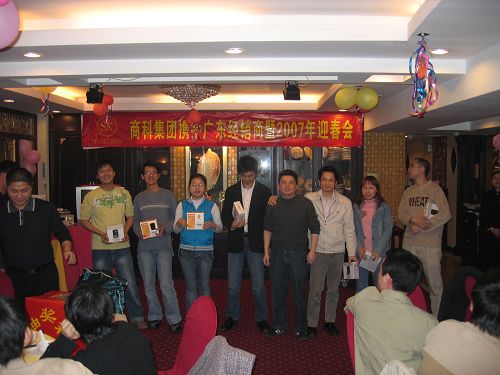 由廣州商科業(yè)務(wù)經(jīng)理熊曄和周健頒發(fā)“2006年度優(yōu)秀個人貢獻(xiàn)獎”共六名