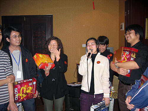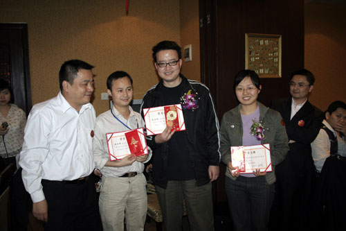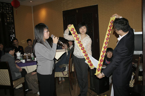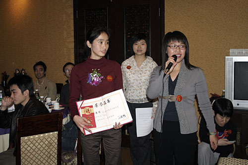 晚會(huì)開始前商科集團(tuán)領(lǐng)導(dǎo)對本年度表現(xiàn)優(yōu)秀的員工進(jìn)行了嘉獎(jiǎng)和表彰他們是:第四季度部門之星:技術(shù)部 :敖亞軍、業(yè)務(wù)部:吳翠、市場部:臧永剛,第四季商科標(biāo)兵:財(cái)務(wù)部:羅春菊,第四季度銷售標(biāo)兵 :田勇,2006年度杰出員工:馮燕蘭,優(yōu)秀職能經(jīng)理 :楊毅,優(yōu)秀經(jīng)理 : 邵清泉
