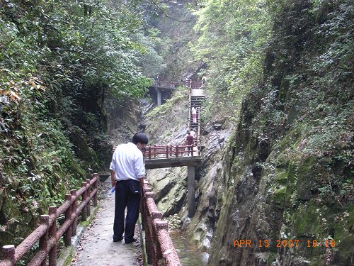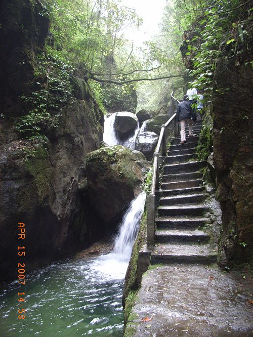 首先是游覽瀑布群:千米瀑、孔雀瀑、飛流瀑、驚心瀑、虎口瀑、清心瀑、音韻瀑及雙飛瀑等穿8條形態(tài)各異的瀑布。