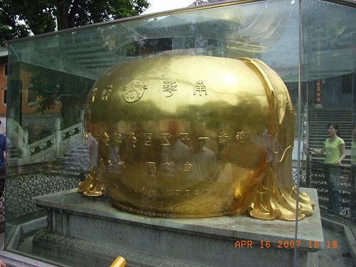寺廟規(guī)模宏偉,香火鼎盛,殿宇巍峨,氣派非凡,殿中佛像莊嚴(yán),五百羅漢栩栩如生,寺內(nèi)保存有六祖慧能祖師真身,更珍藏有中國女皇武則天的護(hù)寺圣旨,御賜千佛袈裟及大藏經(jīng)等珍貴文物,極具歷史價(jià)值。(可是不允許拍照,好可惜。)