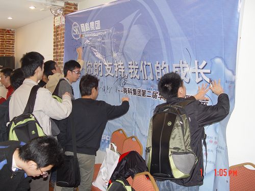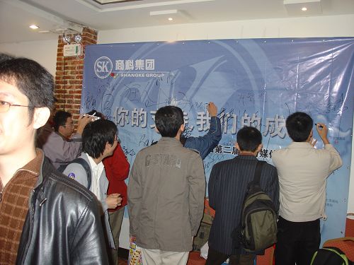 在會(huì)議結(jié)束的最后,我們請(qǐng)上了所有的媒體精英們?cè)谖覀儨?zhǔn)備的背景板上寫(xiě)下了對(duì)商科的祝福,明天會(huì)更好!
