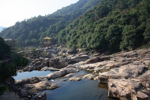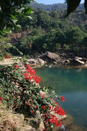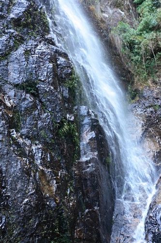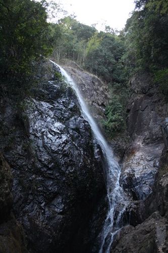 南昆山西南面的石峽山。峽谷盡頭,懸崖峭壁,約有20米高。該瀑布四季不斷,每年汛期,更為壯觀。游人沿著石階拾級(jí)而上,未到景點(diǎn),先聞瀑聲。站在距瀑布近10米的涼亭上,水花濺落周身,暑氣頓消。由于我們?nèi)サ氖墙炝耍钥吹降木吧](méi)有像上面描述的那么美。