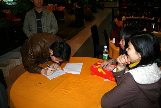 下午4時整,全體與會人員懷著興奮的心情,準時來到位于廣州市區(qū)大嘴漁港飯店的禮堂大會場。在進入會場之后,工作人員為大家準備好了抽簽箱。每人都能抽取一個編號,根據(jù)這個編號大家就能參加商科傳統(tǒng)的抽獎活動了。