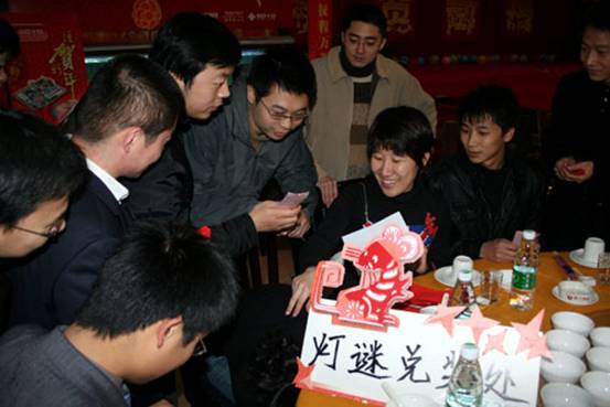 先到場的工作人員早已經(jīng)為大家準備好了燈謎競猜活動。在晚會開始之前,先到的同事和領導們興致勃勃的加入燈謎活動之中。
