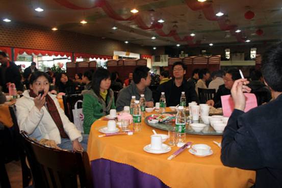 在晚會開始之前,先到的同事們興高采烈的在一起交流,分享著過去一年的喜悅與快樂。經(jīng)過了一年辛勤、緊張的工作,終于可以放松一下了。