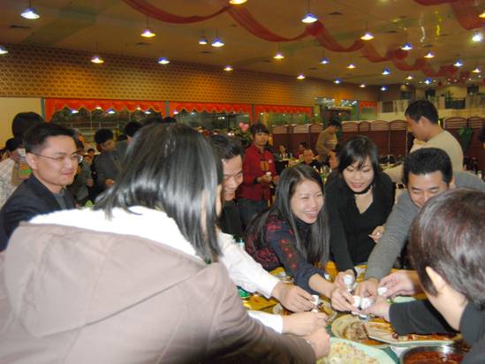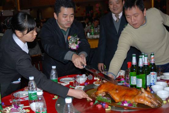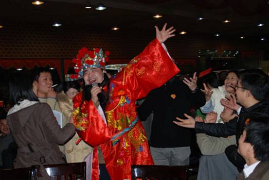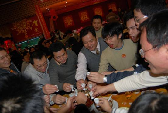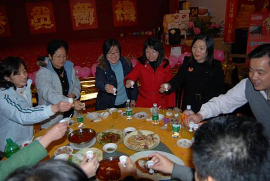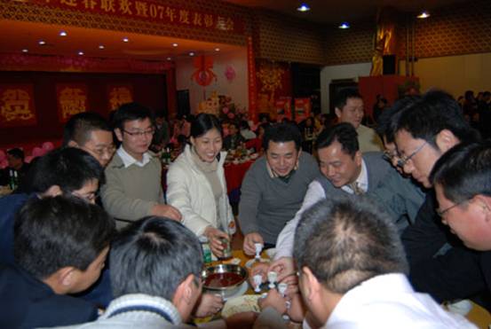 不知不覺兩個多小時已經(jīng)過去了,在同事們快樂的笑聲中,游戲節(jié)目圓滿結束了。大家大概也都饑腸轆轆了,公司為全體員工準備了豐盛的晚宴享用,大餐開始了。