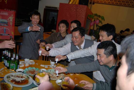 公司孫總為各位經(jīng)理們倒酒,這酒瓶不是一般的大,喝下去也不是一般的勁啊!