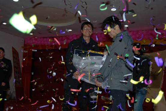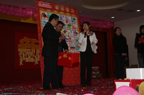 抽獎單元持續(xù)進行了兩個多小時,現(xiàn)場氣氛非常火熱,大家都懷著期盼和興奮的心情期待著自己的禮物。公司準備的非常豐富,再加上公司孫總、熊總、劉總等領(lǐng)導層及各位產(chǎn)品經(jīng)理不斷輪流上臺為大家奉獻額外的現(xiàn)金大獎,使得中獎率高達95%以上,幾乎每個同事們都拿到了屬于自己的新年禮物。