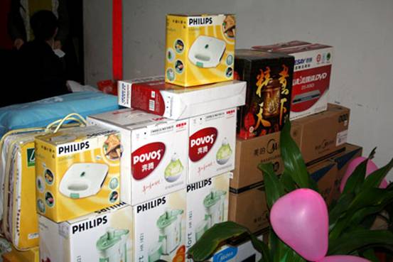 面包機、電烤箱、手表、高檔床上用品、DVD播放器……獎品十分豐富