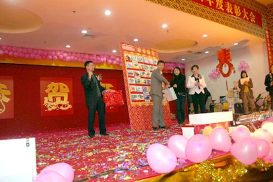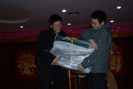 在抽獎晚會的最后,工作人員特別準備了一份神秘的獎品,有全體與會人員共同參與。這份神秘的禮物是什么呢?到底會花落誰家呢?在同事的驚喜聲中,來自臺電數(shù)碼事業(yè)部的一位同事贏得這個神秘的全場特別大獎。