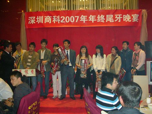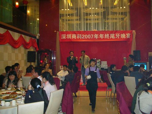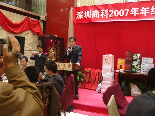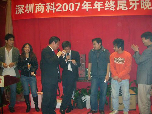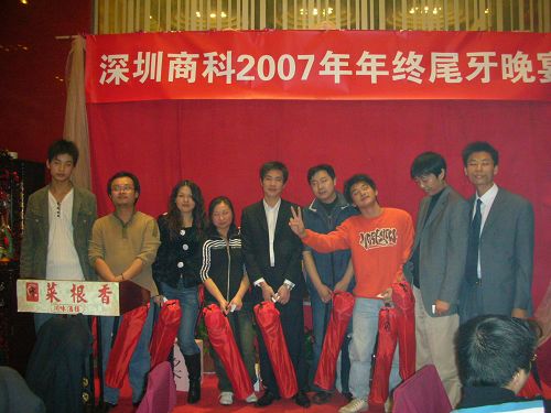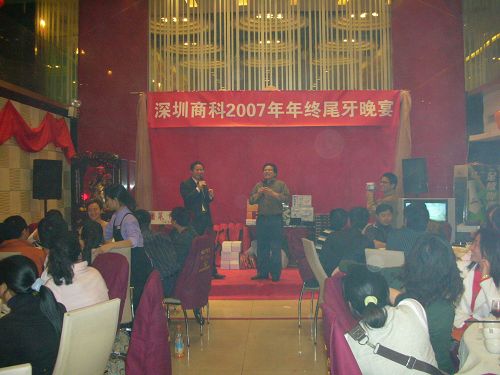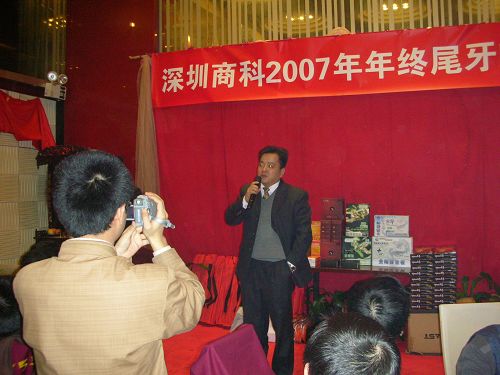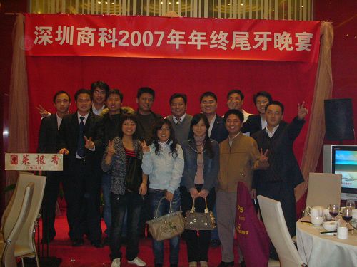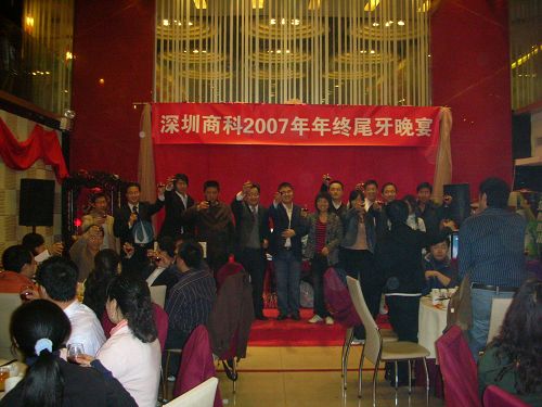 深圳商科為感謝廣大經(jīng)銷商與媒體朋友.在過去一年里的支持與厚愛,于2008年元月24日在深圳市華發(fā)北路菜根香大酒樓舉辦“深圳商科2007年年終尾牙晚宴”,當晚也非常榮幸地請到商科總公司劉總與大家共渡晚宴,同時劉總與深圳分公司經(jīng)理余軍攜全體員工向廣大經(jīng)銷商及媒體朋友祝酒。