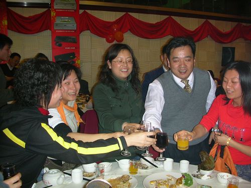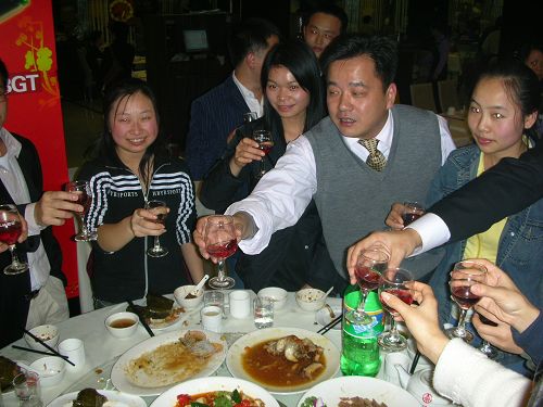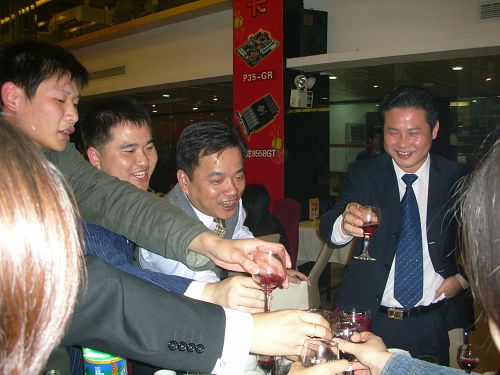 進入晚宴總部劉總與深圳公司余經(jīng)理向客戶敬酒
