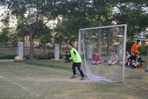 近日,商科足球隊應邀去參加一場足球友誼賽,3點半到達目的地,換好隊服,做做準備活動擺擺陣勢。看,商科的小伙子各個精神抖擻,雖是客場做戰(zhàn),氣勢也不讓分毫。悄悄的說,老總親自帶隊自然底氣十足。再看,主場的帥哥也不耐,各個摩拳擦掌躍躍欲試。看樣子今天的比賽頗有看頭。