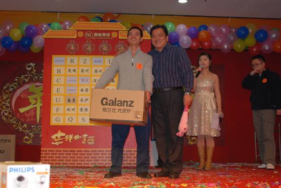 本次晚會商科集團準備了豐盛的禮品和獎項,包括微波爐、IKEA家具、高檔廚具、名牌手表、高檔化妝品、現(xiàn)金等,而且各部門經(jīng)理也要為大家奉獻愛心現(xiàn)金獎,中獎率高度95%哦!