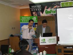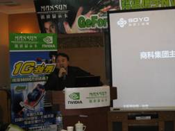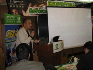 NV廣州區(qū)銷售經(jīng)理楊成發(fā)表講話,楊先生用極富感染力的演講方式向經(jīng)銷商家講述NV專業(yè)顯卡Quadro和NV的CUDA技術(shù),及產(chǎn)品的規(guī)劃、性能特點(diǎn)以及市場優(yōu)勢。