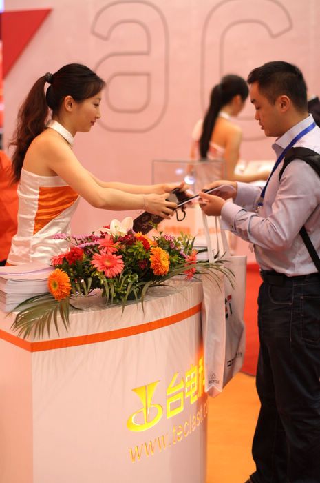 熱情可愛(ài)的前臺(tái)mm也成為了臺(tái)電展區(qū)的一道靚麗的風(fēng)景線。