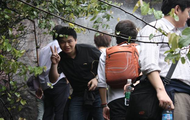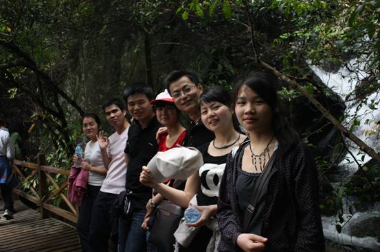 經(jīng)過(guò)一番跋山涉水,大家終于爬到了白水寨的9999級(jí)(最高點(diǎn)哦!),大家撐起笑臉留下值得驕傲的表情。大家看看大汗淋漓、筋疲力盡的我們,是不是都很棒!(掌聲ING)