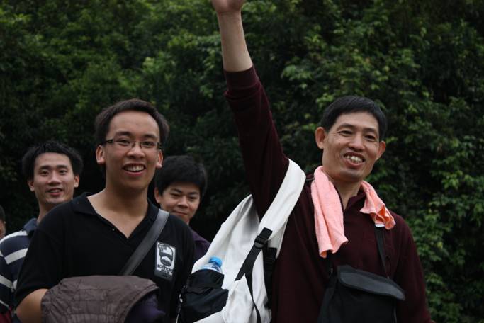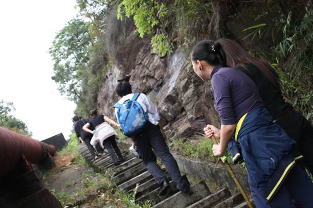 簡(jiǎn)單的午餐后,兄弟姐妹們開(kāi)始攀登白水寨“天南第一梯" 9999級(jí)石級(jí),當(dāng)然不免俗的要在“天下第一梯”前面來(lái)張大合照,這個(gè)時(shí)候的我們一個(gè)個(gè)都精神奕奕的,嘿嘿!