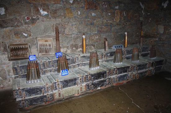2號一早到了大連我們直奔旅順。 1880年,清政府開始修建旅順港。為了增強(qiáng)防衛(wèi)能力,在陸地和海岸線上修了許多炮臺,配備了近100門火炮,僅在模珠礁炮臺就備炮8門,為了戰(zhàn)時需要又建有多處彈藥庫,南子彈庫就是其中的主要一座。它正面庫房東西長55米,南北寬23米,面積1200平方米,主庫兩側(cè)分別建有東庫和西庫兩個藥庫房,設(shè)置雖然不同,但都有通道與主庫相連,從庭院里望去,就好像四合院的廂房一樣。據(jù)史料記載,南子彈庫當(dāng)年儲備有彈頭、炸藥和拉火、引信多達(dá)14種,彈藥存放量1200噸。這些彈藥大多為光緒年間天津機(jī)器局制造封裝。如果你初到此地,怎么也不會想象到下面竟是一座占地一萬多平米的彈藥庫。